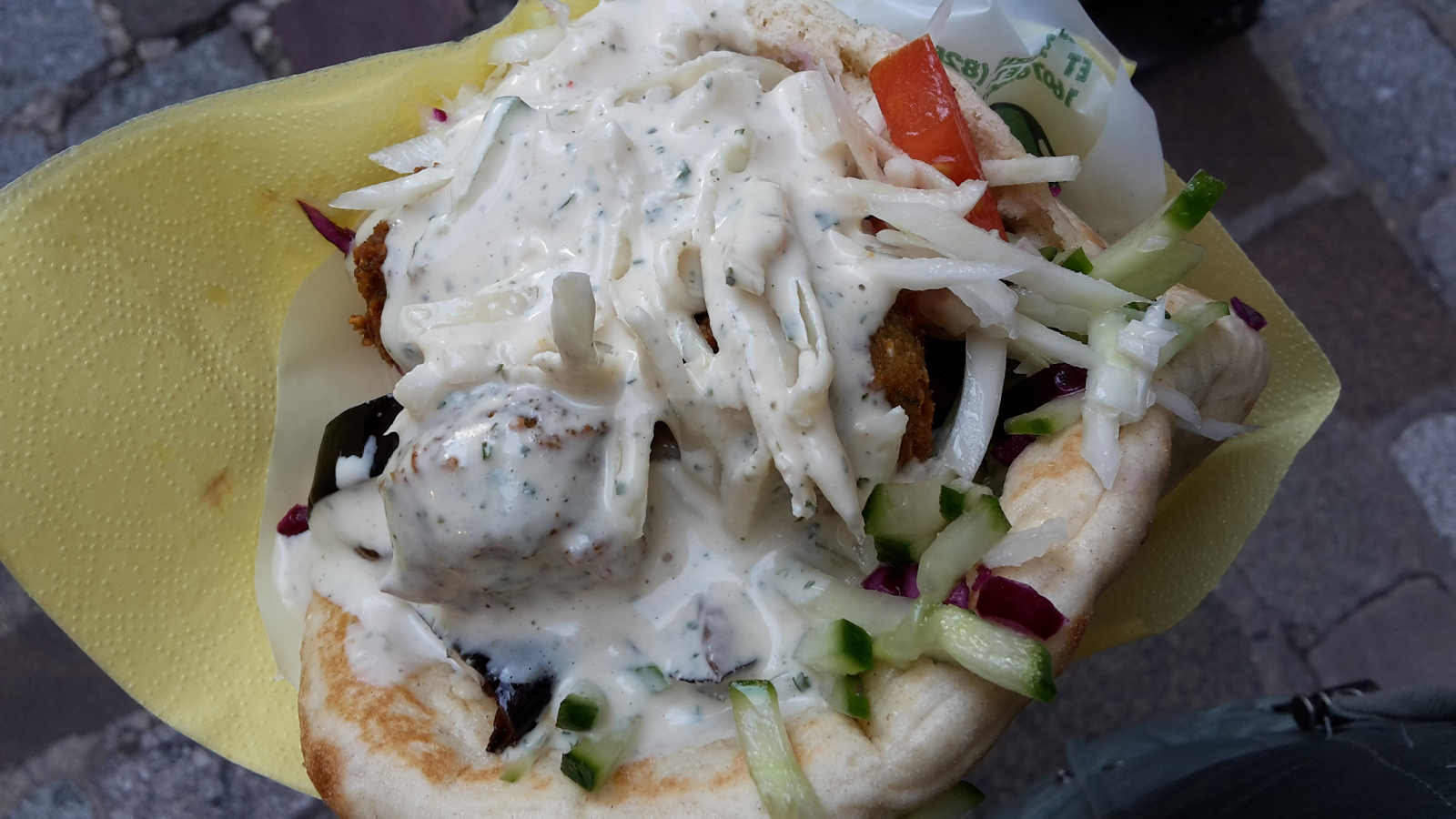 Sticking with a foodie theme now, the Falafel in the Marais area of Paris came highly recommended. There are two next popular branches right across from each other but Las Du Fallafel had the longest line, (two actually) and is the one most favoured online. The shorter and slower moving line is to sit down and eat inside. So we joined the longer line for take away. The queue wasn't that bad on a mid December day and moved pretty quickly. I can imagine it being a much longer queue in the summer months, but orders and payments are taken in the queue, and you're given a little ticket. When you get to the window you hand it over and within seconds you'll have yummy Falafel in your hands. They put the whole thing together in front of you. In seconds. It was pretty amazing to see that too. So then we scurried off and found a corner to munch on our treat. Being a veggie, i've sampled quite a bit of Falafel in my time and I usually find it dry and disappointing... But not these. The Falafel and veggies from Las Du Fallafel was amazing and i'd definitely pop back the next time i'm in Paris.